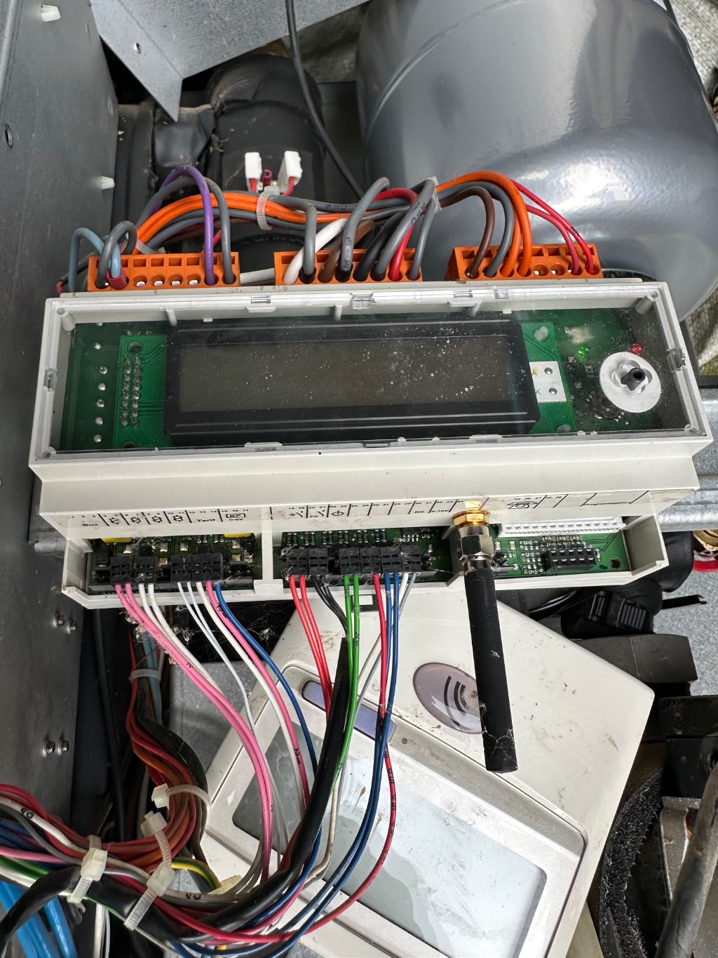 Blocage complet de l'automate pompe à chaleur (PAC) Airpac. Affichage du message d'erreur générique "Contacter SAV" sans code spécifique. Système verrouillé malgré réinitialisation.
