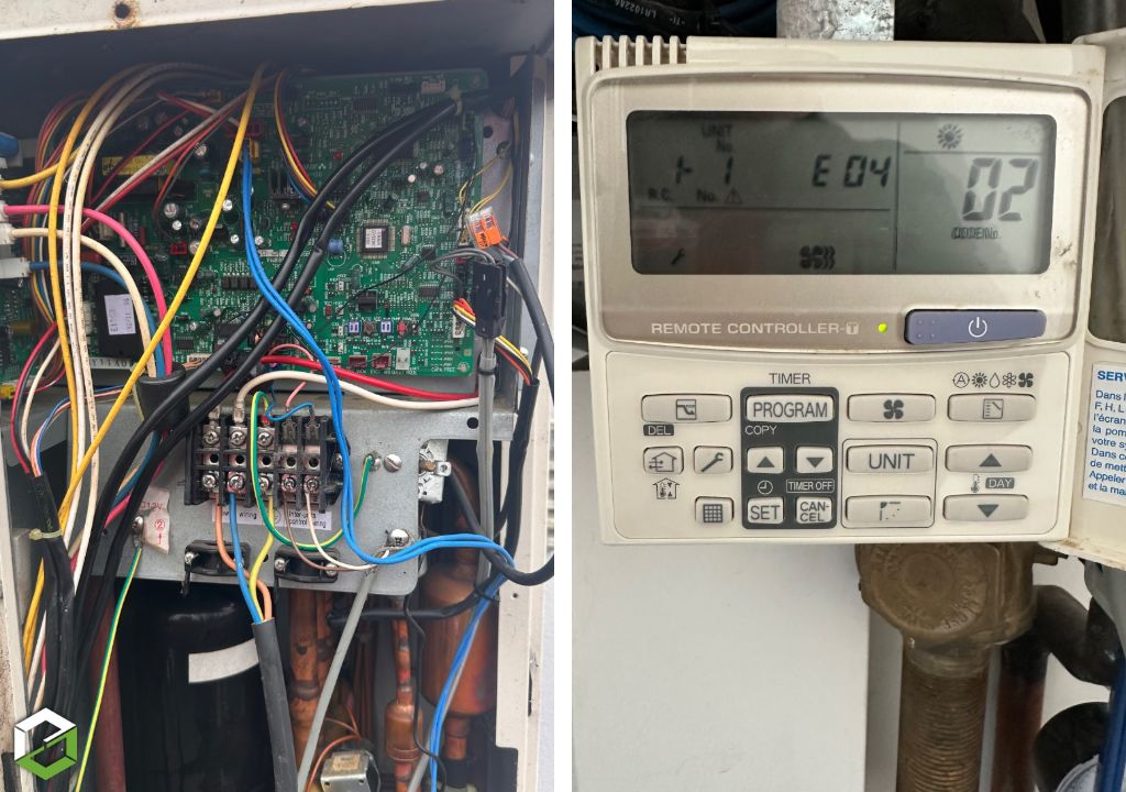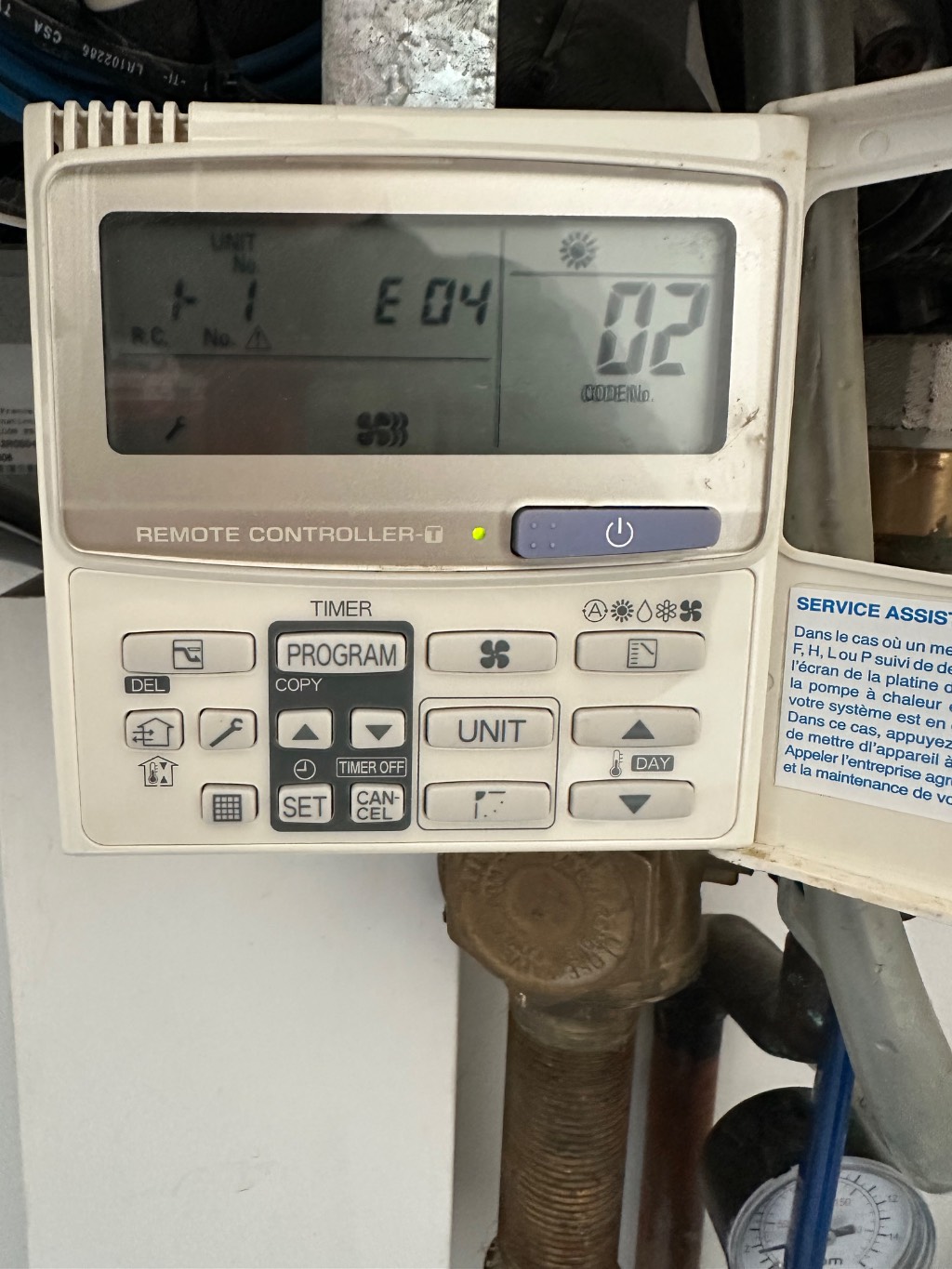 Grâce à cette première assistance à distance, ont pu orienter le client vers une lecture précise des codes erreurs de sa machine. Cette étape cruciale a permis d'identifier immédiatement le défaut E04, signalant une rupture de communication entre le groupe extérieur et l'unité intérieure.